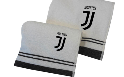 Asciugamano Juventus + Ospite con stemma. Il set ufficiale composto da 1 asciugamano viso, 1 asciugamano ospite/bidet della tua squadra del cuore, realizzato in morbida spugna di cotone al 100%, soffice con colori robusti.